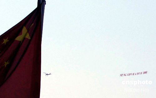 4月22日,紐約華人華僑租用一架小型飛機飛越曼哈頓,打出“西藏永遠是中國的一部分”的橫幅。中新社發(fā) 龔文謨 攝