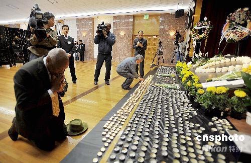 圖:舊金山前市長(zhǎng)跪祭汶川大地震遇難者