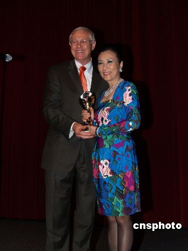當(dāng)?shù)貢r(shí)間11月4日,中美電影節(jié)在美國(guó)洛杉磯好萊塢盛大開(kāi)幕,1百多部中國(guó)和美國(guó)電影參加競(jìng)選,評(píng)選出45部中美電影,再?gòu)闹羞x出10部電影,頒發(fā)“金天使獎(jiǎng)”。中美電影明星齊集好萊塢,1000多人參加。洛杉磯縣政委員安東諾奇向香港影視紅星汪明荃頒“香港藝人杰出貢獻(xiàn)獎(jiǎng)”。中新社發(fā) 盧威 攝