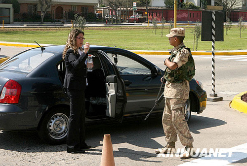 11月16日,在秘魯首都利馬的亞太經(jīng)合組織(APEC)領(lǐng)導人非正式會議國際新聞中心,執(zhí)勤士兵檢查槍械。秘魯軍方日前在利馬部署了近一萬名士兵,以確保將于11月22日至23日舉行的APEC第十六次領(lǐng)導人非正式會議安全舉行。