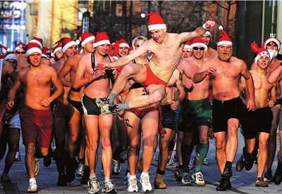 7日,一群穿泳裝戴圣誕帽的“圣誕老人”頂著寒風(fēng)在匈牙利首都布達(dá)佩斯參加跑步活動。當(dāng)日,一些身著泳裝的“圣誕老人”在布達(dá)佩斯舉行慈善跑步活動,為當(dāng)?shù)匾患覂和t(yī)院捐款。