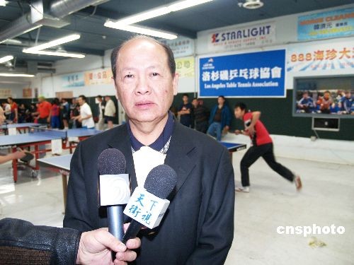 12月28日,美國亞美體育協(xié)會(huì)和洛杉磯乒乓球協(xié)會(huì)主辦2008年 “團(tuán)結(jié)杯”乒乓球比賽開賽,共有16支華人乒乓球隊(duì)、50余名選手參加逐角。美國亞美體育協(xié)會(huì)會(huì)長呂詩澄向美國媒體介紹在海外推展乒乓球運(yùn)動(dòng)的體驗(yàn)。中新社發(fā) 盧威 攝