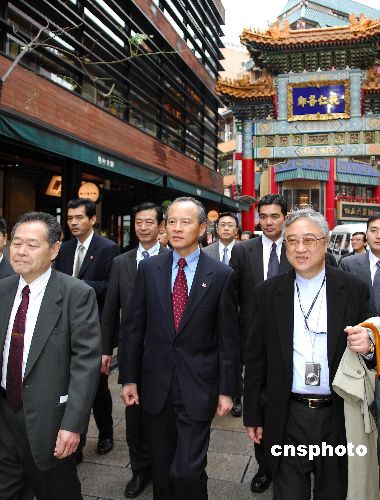 2009年1月23日上午,中國駐日本國特命全權(quán)大使崔天凱冒雨前往橫濱中華街,向當?shù)厝A人華僑拜年。崔天凱與橫濱華僑總會會長任政光親切會談,慰問熱心資助教育的愛國華僑吳桂顯先生的遺孀,在臺灣同胞茶店品茶論道等,親身體驗當?shù)厝A人生活。崔天凱還視察了橫濱中華街關(guān)帝廟、媽祖廟等建筑,并出席華僑主辦的歡迎午宴。中新社發(fā) 侯宇 攝