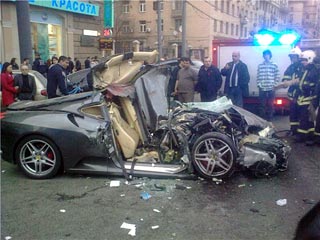 俄新社4月26日?qǐng)?bào)道,據(jù)莫斯科交通管理部門報(bào)告,25日晚一輛法拉利由于車速過快,撞向停在路邊的路虎。之后,路虎將旁邊的寶馬和宏達(dá)汽車撞壞。法拉利上的乘客被撞傷,而司機(jī)受到氣囊保護(hù),沒受到任何損傷。