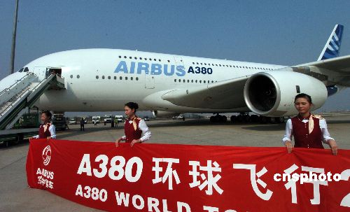 空中客車A380飛機環(huán)球飛行之旅,十月二十三日抵達廣州,拉開了為期一周的中國大陸演示飛行的序幕。A380將在中國大陸的廣州、上海、北京三地進行體驗飛行和靜態(tài)演示。中新社發(fā) 柯小軍 攝