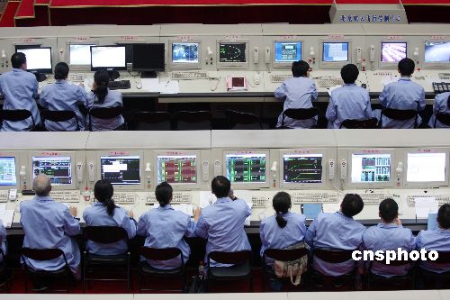 十月二十四日下午,北京航天飛行控制中心工作人員在做嫦娥一號衛(wèi)星發(fā)射前的最后準備。中國首顆月球探測衛(wèi)星——嫦娥一號發(fā)射工作已經(jīng)準備就緒,計劃于當日十八點零五分發(fā)射。中新社發(fā) 毛建軍 攝