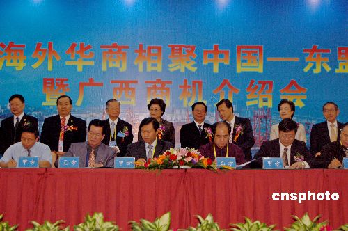 十月二十九日,二〇〇七海外華商相聚中國—東盟博覽會暨廣西商機介紹會在廣西南寧舉行,兩百名華商參加會議,會上簽約十八個項目,金額三點八六億美元。中新社發(fā) 劉萬強 攝