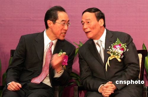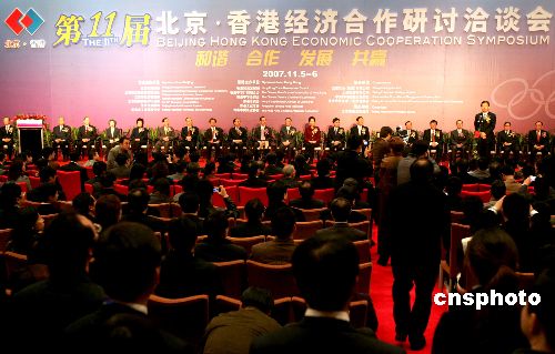 11月5日,第11屆北京·香港經濟合作研討洽談會在北京舉行。北京市市長王岐山與香港政務司司長唐英年出席開幕式。中新社發(fā) 張宇 攝