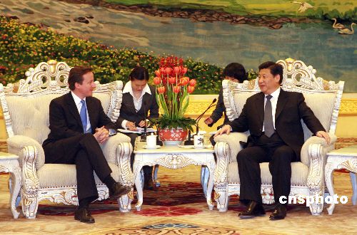 十二月十九日,中共中央政治局常委、書記處書記習(xí)近平在北京人民大會(huì)堂會(huì)見(jiàn)了由英國(guó)保守黨領(lǐng)袖戴維·卡梅倫率領(lǐng)的英國(guó)保守黨代表團(tuán)。中新社發(fā) 廖文靜 攝