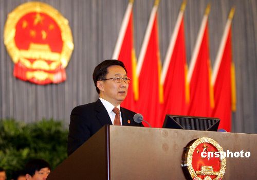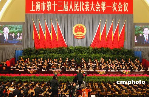 圖為市長(zhǎng)韓正作上海市人民政府工作報(bào)告。