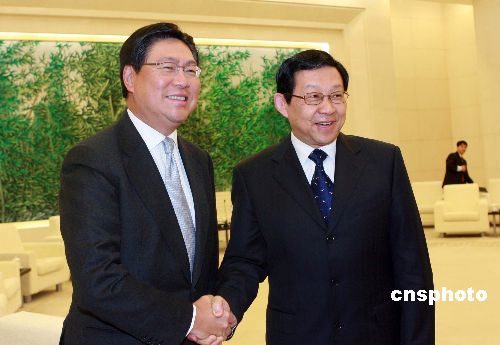 一月二十五日,中國(guó)商務(wù)部部長(zhǎng)陳德銘在北京會(huì)見香港商務(wù)及經(jīng)濟(jì)發(fā)展局長(zhǎng)馬時(shí)亨一行。中新社發(fā) 廖文靜 攝