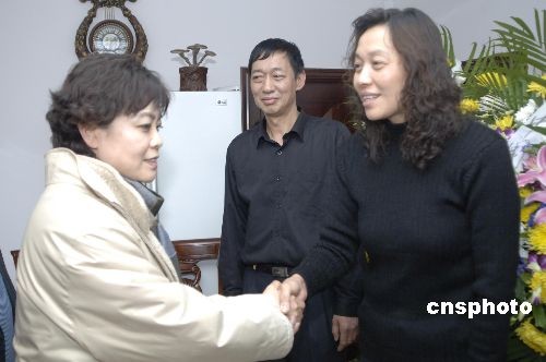 中國著名作家浩然2月20日晨因冠心病引起心臟衰竭在北京辭世,享年76歲。中國作家協(xié)會主席鐵凝(左)前往其家中慰問。浩然本名梁金廣,20世紀(jì)50年代開始發(fā)表作品,1959年加入中國作家協(xié)會,出版70余種著作。其代表作有文革時期發(fā)表的長篇小說《艷陽天》、《金光大道》等。中新社發(fā) 徐曦弋 攝