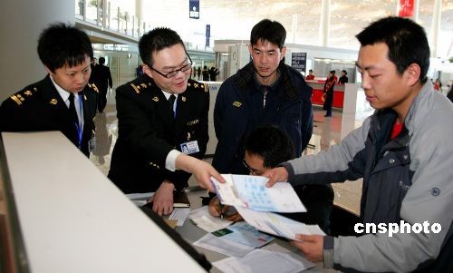 北京首都機場T3航站樓將于2月29日正式啟用,目前入駐T3航站樓的海關工作人員已經(jīng)到位。為便于旅客出行,T3航站樓采用開放式出港值機大廳模式,海關監(jiān)管模式與以往不同,提醒所有乘坐國際航班的旅客在通關時注意以下相關事宜:無申報物品選擇“綠色通道”通關的旅客,不再要求填寫《申報單》;對有申報物品選擇“紅色通道”通關的旅客,則要求必須填寫《申報單》,向海關申報。中新社發(fā) 雷虹 攝