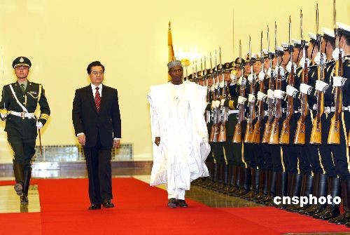 圖:胡錦濤舉行儀式歡迎尼日利亞聯(lián)邦共和國總統(tǒng)亞拉杜瓦