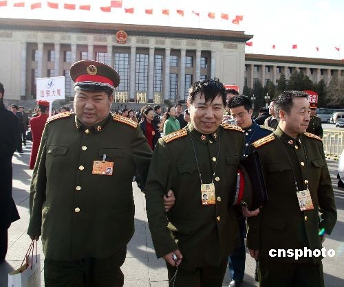 3月2日,全國政協(xié)十一屆一次會議預備會在北京人民大會堂舉行,毛澤東之孫、全國政協(xié)新委員毛新宇(左一)參加會議后,與其他委員相扶走出大會堂。中新社發(fā) 盛佳鵬 攝