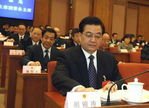 圖:胡錦濤出席全國(guó)人大主席團(tuán)會(huì)議