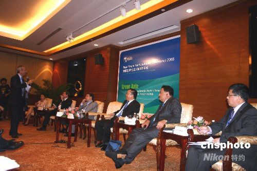 2008年4月11日-13日,博鰲亞洲論壇2008年年會在海南博鰲召開,本屆年會的主題為"綠色亞洲:在變革中實現(xiàn)共贏"。11日晚上,"媒體看亞洲"分論壇在博鰲國際會議中心舉行,中國國務院新聞辦公室副主任王國慶、鳳凰衛(wèi)視控股有限公司董事局主席兼行政總裁劉長樂、《新財富》雜志總編輯鄭頌、彭博資訊電視記者安允文、《時代周刊》亞洲出版總監(jiān)艾倫·蘭漫、MTV全球電視網大中華區(qū)董事總經理(維亞康母公司中國區(qū)首席代表)李亦非等多位重量級媒體嘉賓參與了這場對話。中新社發(fā) 關向東 攝
