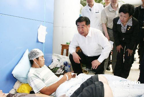 回良玉趕赴綿陽災區(qū)察看災情 看望受災群眾