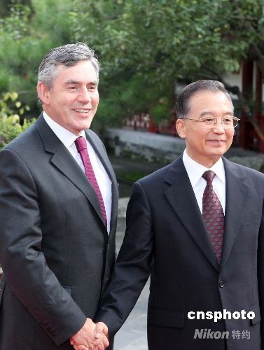 8月22日,中國國務(wù)院總理溫家寶在北京釣魚臺國賓館會見英國首相布朗。中新社發(fā) 廖文靜 攝