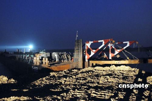 圖為十三日中俄雙方有關(guān)人員在黑瞎子島上為揭牌儀式作準(zhǔn)備。