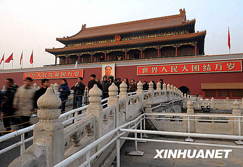 12月9日,游客從天安門(mén)金水橋上走過(guò)。