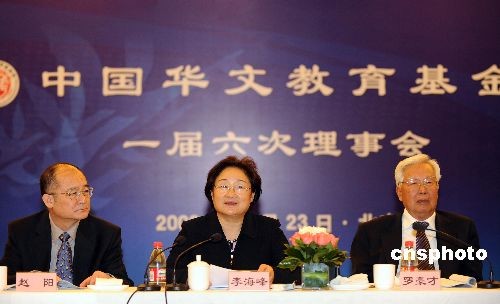 十二月二十三日,國僑辦主任李海峰(中)、全國政協(xié)原副主席羅豪才(右)、國僑辦副主任趙陽出席中國華文教育基金會(huì)理事會(huì)。當(dāng)日,中國華文教育基金會(huì)一屆六次理事會(huì)在北京召開,會(huì)議選舉第十一屆全國政協(xié)委員、中國海外交流協(xié)會(huì)副會(huì)長林文肯任中國華文教育基金會(huì)理事長。張偉超由于年齡原因,不再擔(dān)任理事長。中新社發(fā) 廖攀 攝