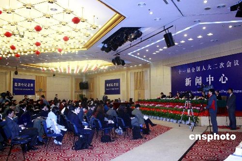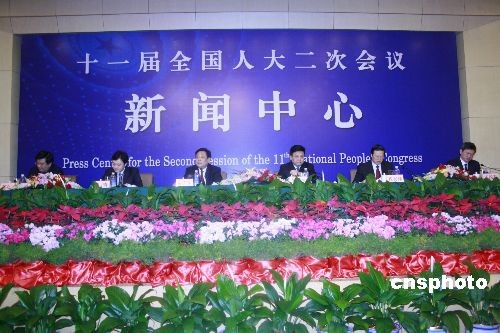 3月11日上午11時,十一屆全國人大二次會議新聞中心舉行“當(dāng)前環(huán)境保護形勢和任務(wù)”專題采訪,邀請環(huán)境保護部副部長張力軍(分管污染防治與減排、環(huán)境執(zhí)法等)、吳曉青(分管環(huán)評、監(jiān)測、環(huán)境科技等),環(huán)境保護部污染防治司司長翟青,環(huán)境保護部環(huán)境影響評價管理司司長祝興祥,環(huán)境保護部生態(tài)保護司司長莊國泰,在大會新聞中心接受中外記者采訪。中新社發(fā) 金立冬 攝