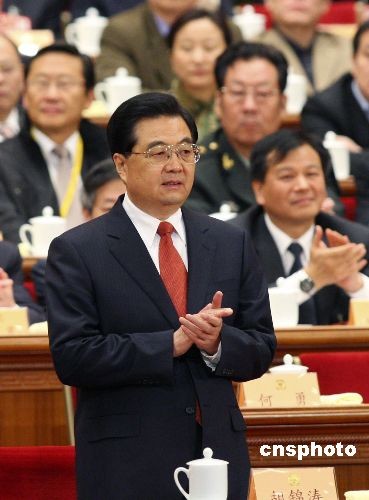 3月12日,全國(guó)政協(xié)十一屆二次會(huì)議舉行閉幕大會(huì),國(guó)家主席胡錦濤出席閉幕大會(huì)。中新社發(fā) 盛佳鵬 攝