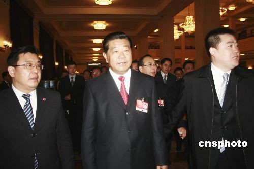 2009年3月12日9時(shí),全國政協(xié)十一屆二次會(huì)議在人民大會(huì)堂閉幕,全國政協(xié)主席賈慶林步入會(huì)場。中新社發(fā) 金立冬 攝
