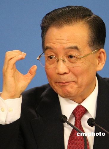 3月13日上午,溫家寶總理在中外記者招待會(huì)上回答中國(guó)新聞社記者、中國(guó)新聞網(wǎng)記者翁陽提問時(shí)表示,財(cái)政赤字還在可控的范圍內(nèi),債務(wù)也還是安全的。中新社發(fā) 任晨鳴 攝