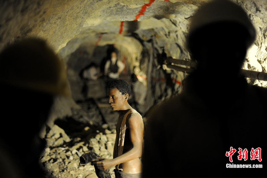 南非的金礦主要分布在奧蘭治河的支流瓦爾河流域,大體成一半圓形,延伸500公里,素有“金弧”之稱,而礦區(qū)主體便是以約翰內(nèi)斯堡為中心,向東西延伸。 2010世界杯主賽場——約翰內(nèi)斯堡足球城球場便建在一片金礦之中,被當?shù)厝诵稳轂椤氨唤鸬V包圍的球場”。近日,金礦試驗新型炸藥,爆炸聲傳到足球城球場,還引起全世界媒體的虛驚一場。 在約翰內(nèi)斯堡“皇冠金礦”舊址上建起的主題公園“黃金城”中,游客在這里可以看到,18世紀末淘金熱潮時礦場附近造幣廠、餐廳、診所的舊模樣!盎使诮鸬V”因為礦石含金量日趨下降,于1977年正式停產(chǎn)。中新社發(fā) 廖攀 攝