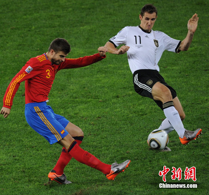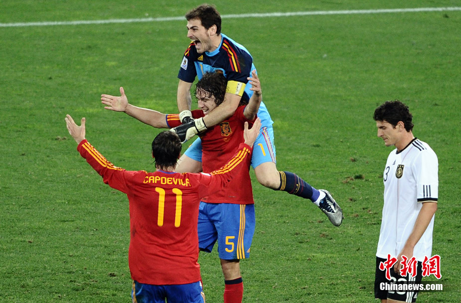 北京時間7月8日凌晨2:30,南非世界杯第二場半決賽在德班球場拉開戰(zhàn)幕,由德國隊迎戰(zhàn)西班牙。憑借普約爾在第73分鐘的頭球破門,西班牙隊1-0力克德國,與荷蘭隊會師決賽。