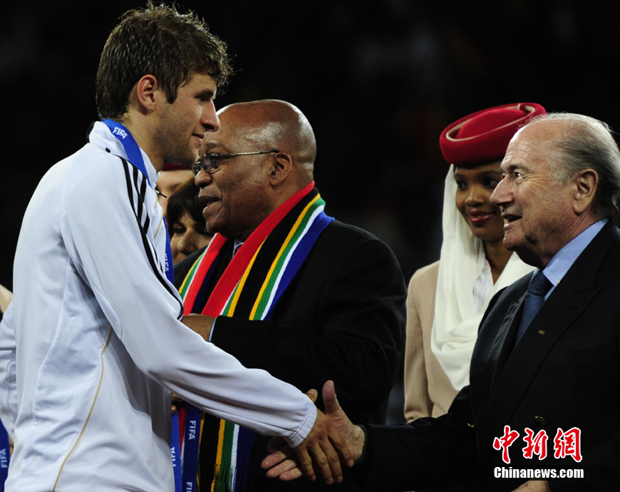 北京時(shí)間7月11日凌晨2:30,南非世界杯進(jìn)行了三四名決賽的爭奪戰(zhàn),由烏拉圭在伊麗莎白港的納爾遜·曼德拉海灣球場迎戰(zhàn)德國隊(duì)。最終在一場進(jìn)球大戰(zhàn)中,德國隊(duì)?wèi){借第82分鐘赫迪拉的進(jìn)球一錘定音,以3-2險(xiǎn)勝對手,獲得南非世界杯第三名。
