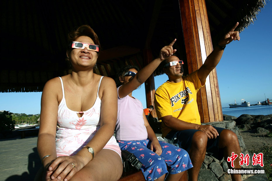 7月11日,數(shù)以千計(jì)的游客涌向位于太平洋東南部的法屬波利尼西亞群島(復(fù)活節(jié)島),觀看在南太平洋群島上350年一遇的日食景象。