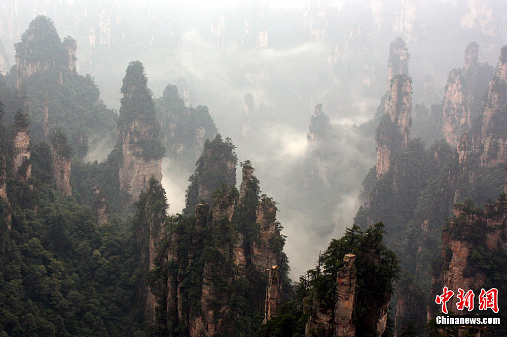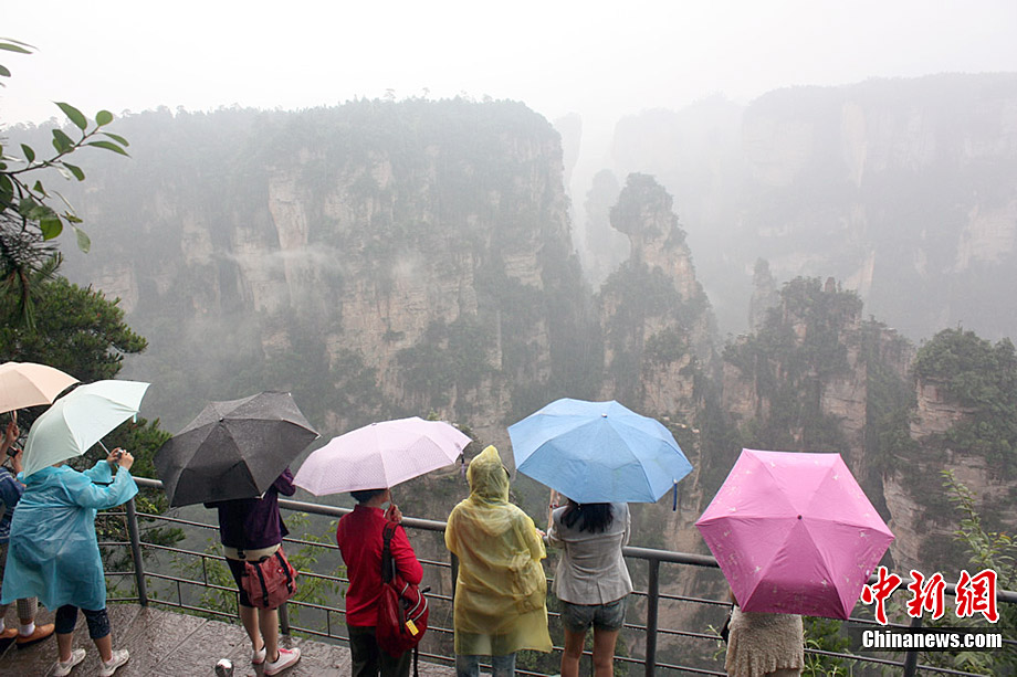 7月9日至12日連續(xù)不斷的大雨天氣,給在張家界觀光的中外游客帶來一些不便,但絲毫沒有影響游客的興致。雨中張家界形成的云海、瀑布風景美輪美奐,蔚為壯觀,別具韻味,每天令上萬名游客陶醉其中。鄧道理 攝