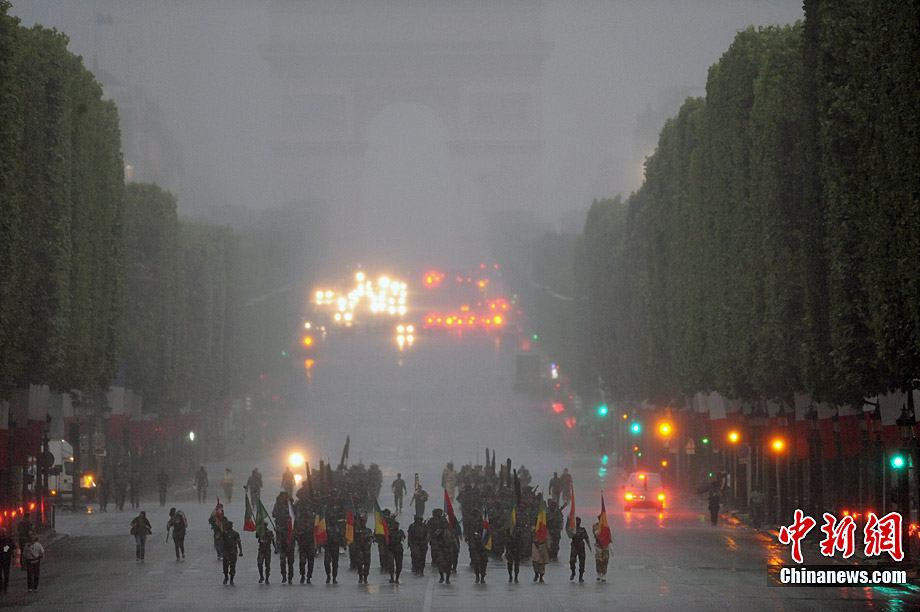 7月12日,法國(guó)巴黎的香榭舍大街上,來(lái)自13個(gè)非洲國(guó)家和法國(guó)軍隊(duì)的士兵冒雨進(jìn)行了國(guó)慶日閱兵式彩排。7月14日是法國(guó)國(guó)慶日。1789年的這一天,巴黎人民攻占了象征封建統(tǒng)治的巴士底獄,推翻了君主政權(quán)。1880年,7月14日被正式確立為法國(guó)的國(guó)慶日,法國(guó)人每年都要隆重紀(jì)念這個(gè)象征自由和革命的日子。