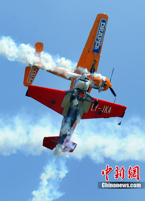 當(dāng)?shù)貢r間7月17日,來自世界各地60多架老式飛機(jī)參加了在羅馬尼亞首都布加勒斯特北郊亨利·科安達(dá)國際機(jī)場舉行的2010飛行表演。