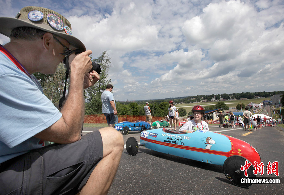 當(dāng)?shù)貢r(shí)間7月21日,美國俄亥俄州舉行了第73屆全美“肥皂盒”小車大賽。來自美國各地以及加拿大、日本、德國和新西蘭的約500名車手?jǐn)y帶自己的愛車參賽!胺试砗小毙≤嚊]有任何動(dòng)力裝置,其主要設(shè)計(jì)目標(biāo)是減少空氣阻力和摩擦力,以便讓小車的速度達(dá)到最高。