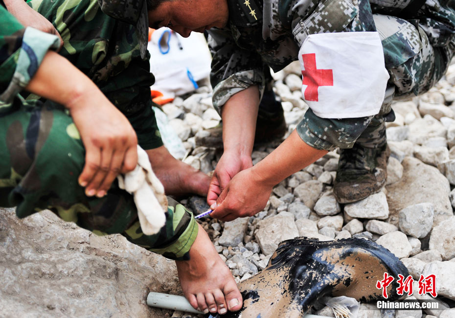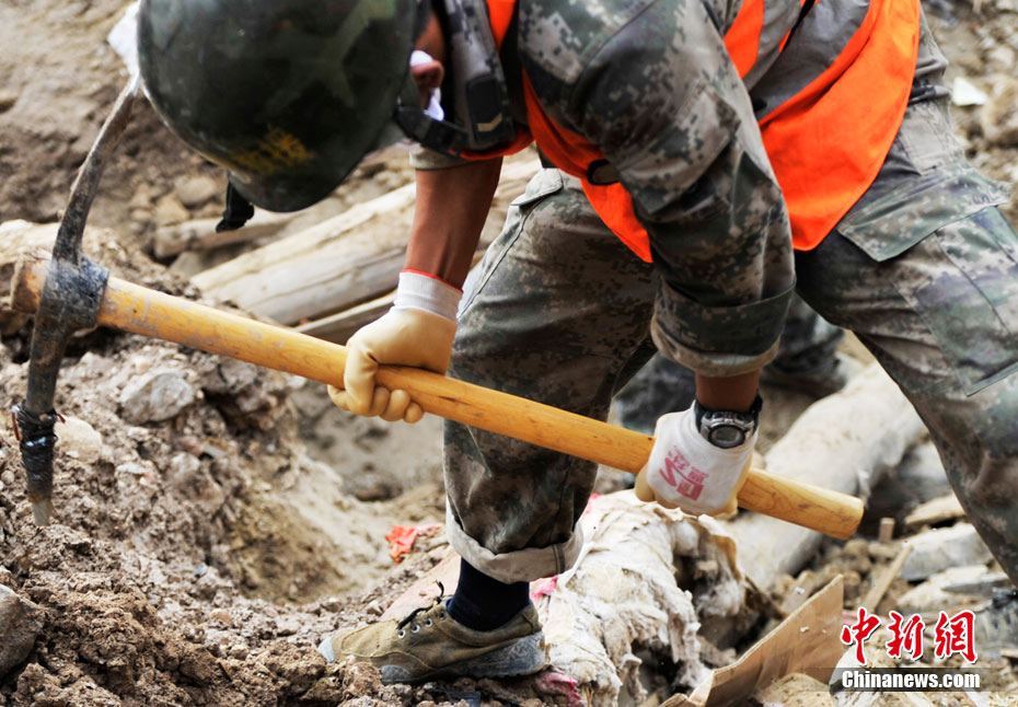 8月10日 舟曲救援進(jìn)入到第三天,解放軍武警官兵們在廢墟中尋找著一切希望。中新網(wǎng)記者 金碩 攝