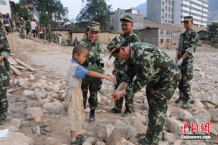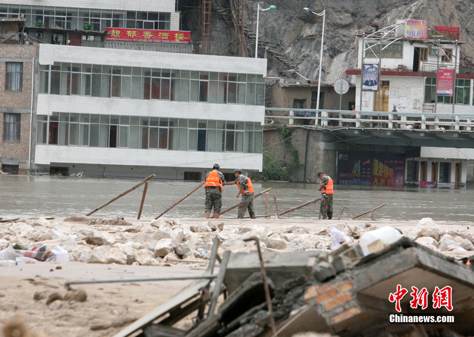 8月10日,蘭州軍區(qū)某集團軍“開山斧工兵團”兩次對舟曲災區(qū)堰塞湖實施爆破,雖然通過爆破,使河道基本疏通,但效果還不太明顯。11日,蘭州軍區(qū)工兵連將繼續(xù)爆破,使用炸藥重量也將提高。中新社發(fā) 劉忠俊 攝