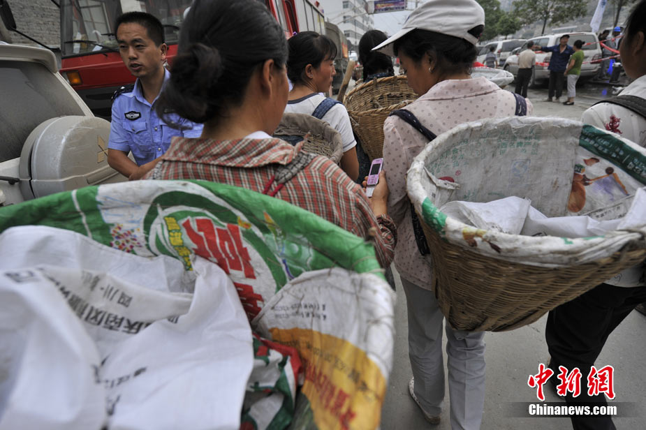 從早上8點(diǎn)到12點(diǎn),一上午這支“突擊隊(duì)”來回四趟,天氣炎熱,雖然對(duì)地形非常熟悉,她們休息的次數(shù)越來越多,步子也慢了起來。休息間歇,記者問起,這次清運(yùn)垃圾政府會(huì)不會(huì)給些工資,大家都笑而不語!敖o不給錢無所謂,發(fā)生這么大的事情,幫點(diǎn)忙也是應(yīng)該的!眹(yán)鄺條對(duì)記者說。