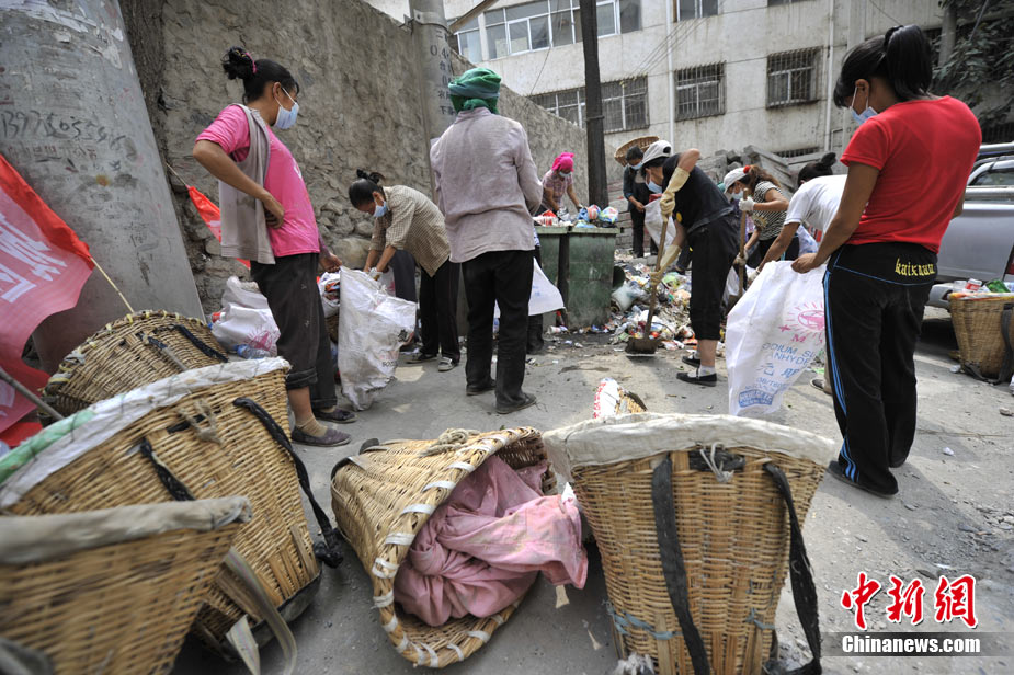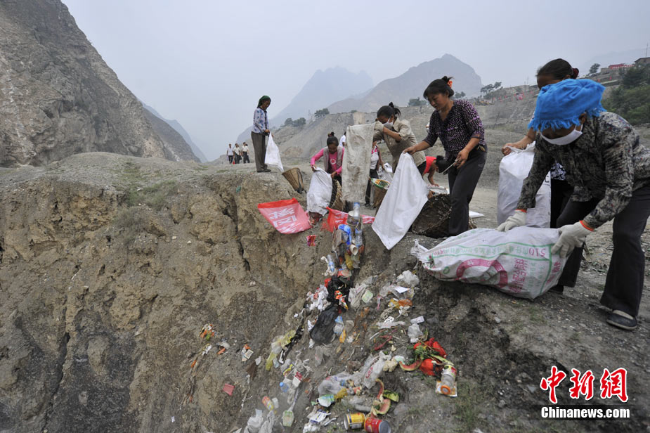 目前,舟曲災(zāi)區(qū)的衛(wèi)生防疫工作正在加緊進(jìn)行,在衛(wèi)生部門緊急調(diào)集消毒、防疫藥品,配齊防疫專業(yè)人員對(duì)重點(diǎn)部位進(jìn)行消毒的同時(shí),舟曲縣組織600多人進(jìn)行垃圾清理!氨澈t突擊隊(duì)”今日正式上崗,這也意味這舟曲災(zāi)區(qū)的生活秩序正在從細(xì)部重建。