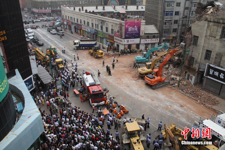 中新網(wǎng)長春8月12日電 (崔顏鋒 張?zhí)旎ⅲ?2日5時30分左右,位于長春市長春大街和大經(jīng)路交匯處的一棟老樓突然倒塌,目前已知有4人被埋在瓦礫中。截至上午10時50分,已有一人獲救,還有一人被發(fā)現(xiàn),但據(jù)稱已經(jīng)死亡。目前,救援人員正在繼續(xù)進(jìn)行搜救。圖為救援人員在現(xiàn)場搜救。 張策 攝