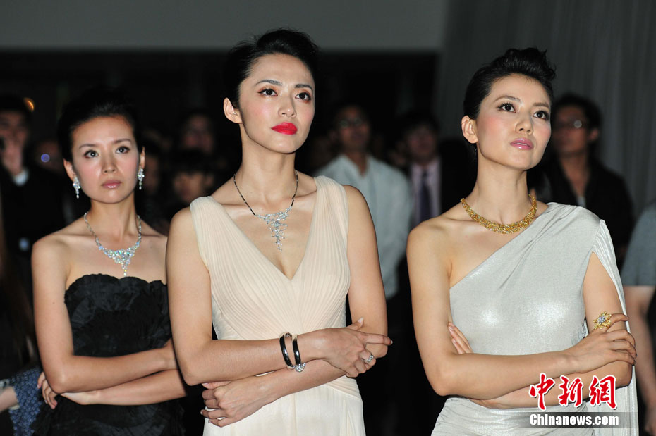 8月12日晚,永恒印記“Shining Light”鉆飾設(shè)計大賽獲獎作品全球首展在北京舉行。30位來自南部非洲的年輕設(shè)計師以25000顆總重達630克拉的美鉆向世界展示了他們在鉆石設(shè)計領(lǐng)域的極致才華。姚晨(中)、高圓圓(右)、董潔等藝人盛裝前來助陣。中新社發(fā) 李學(xué)仕 攝