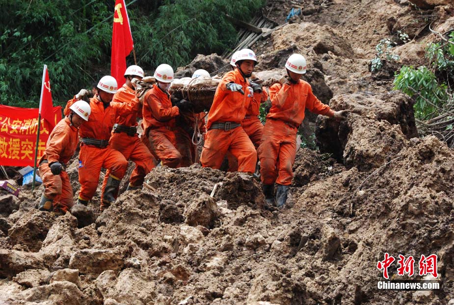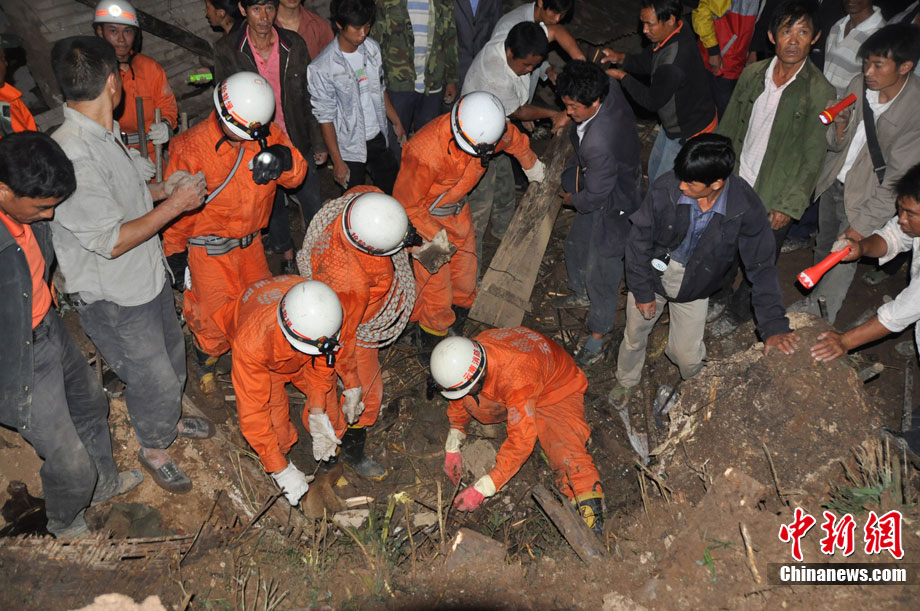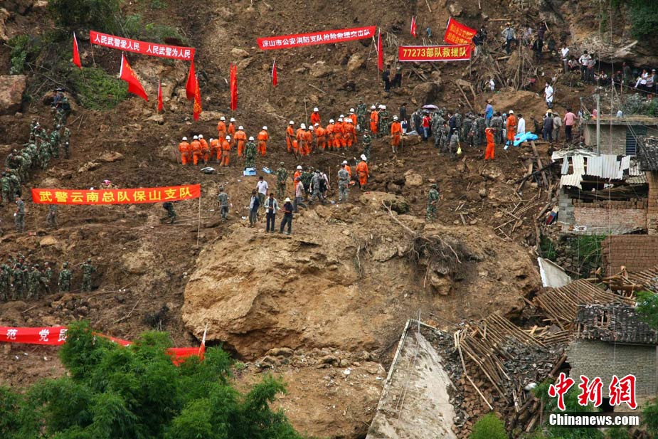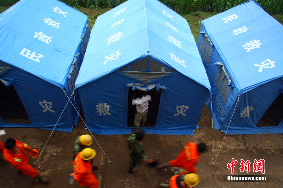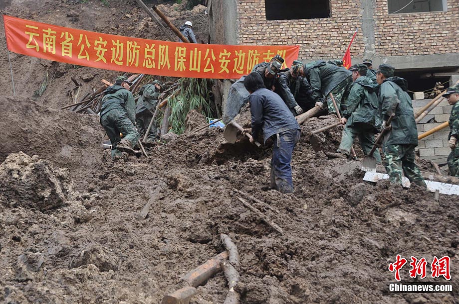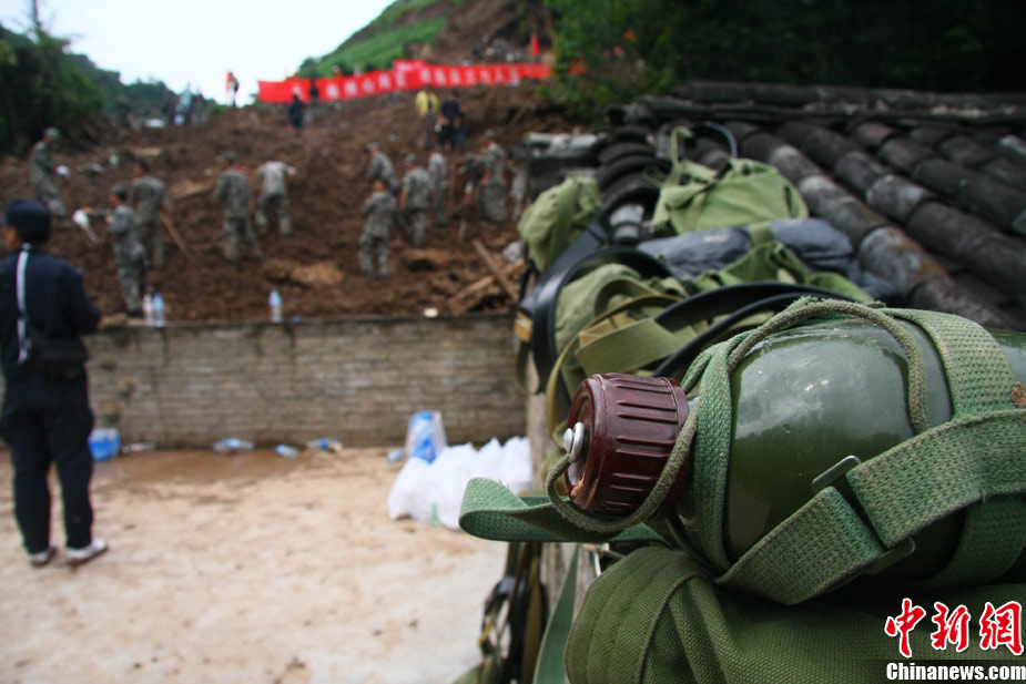 截止2010年9月3日上午8時(shí),云南省保山隆陽區(qū)瓦馬鄉(xiāng)河?xùn)|村大石房村民小組的特大地質(zhì)災(zāi)害已致15人死亡,33人失蹤。據(jù)參與救援的武警某中隊(duì)中隊(duì)長介紹,他們中隊(duì)參加救援的150多人當(dāng)中80%都是“90”后,最小的只有17歲,并且在兩天的救援工作中就搜救出了2名遇難者。圖為救援官兵午間休息。中新社發(fā) 任東 攝