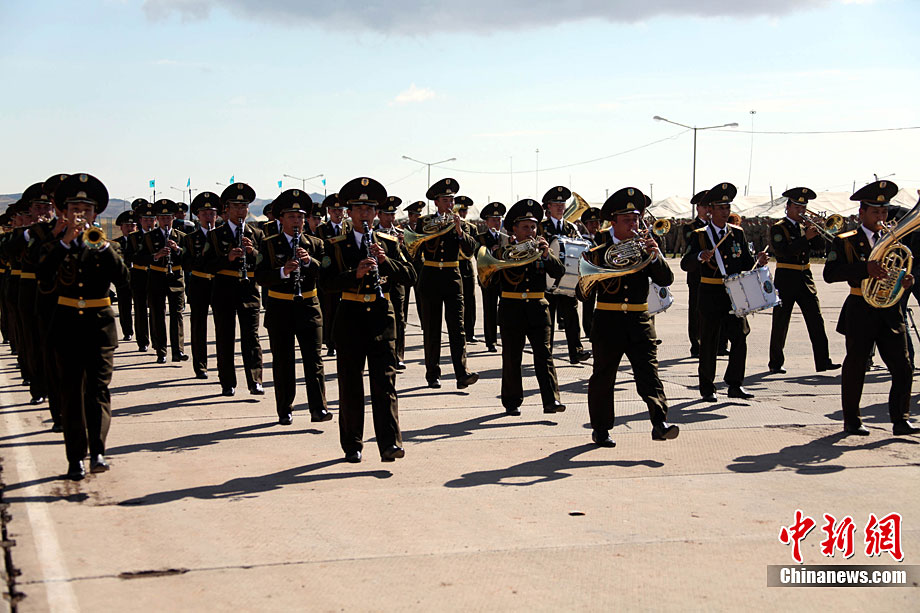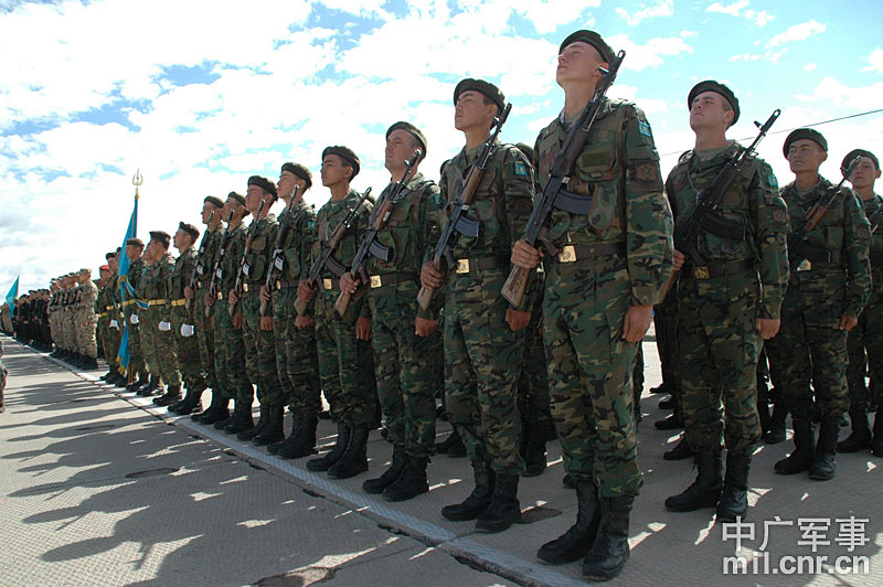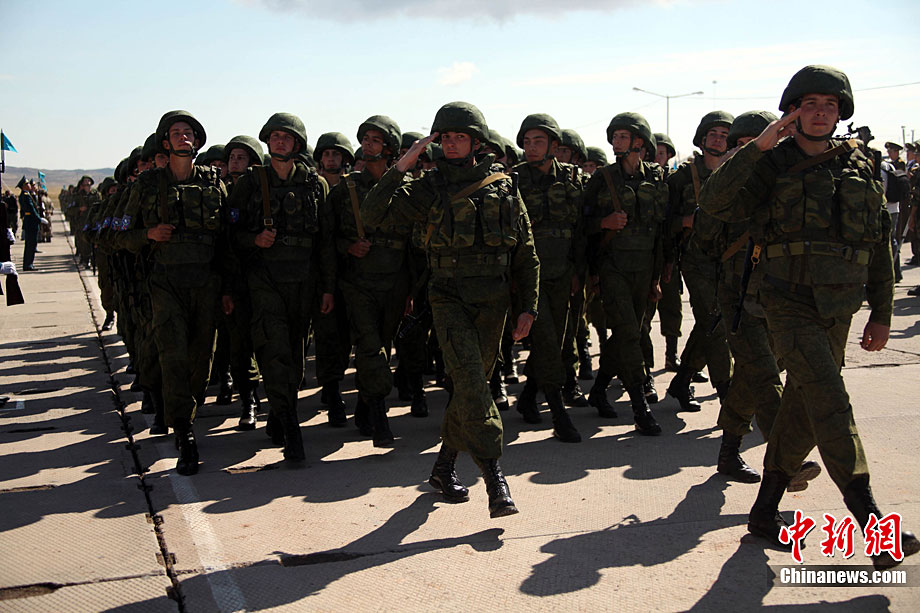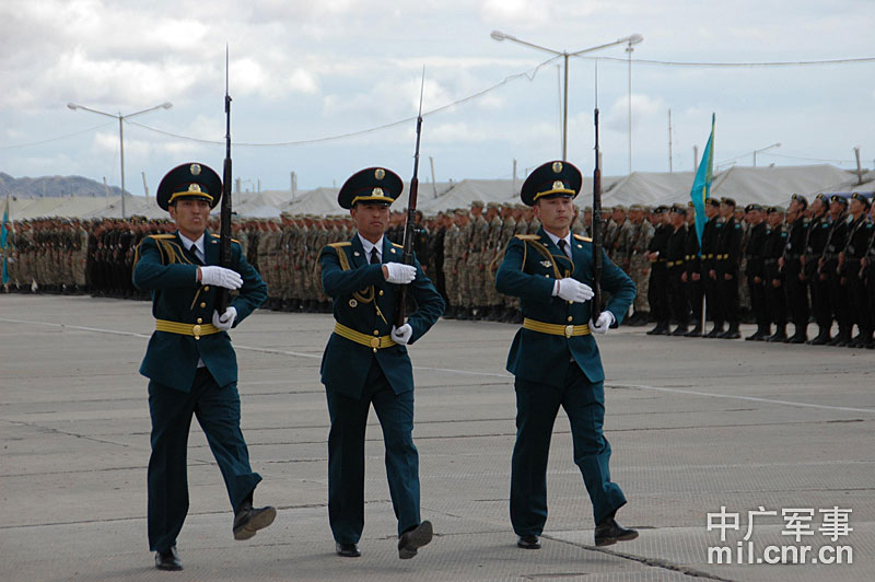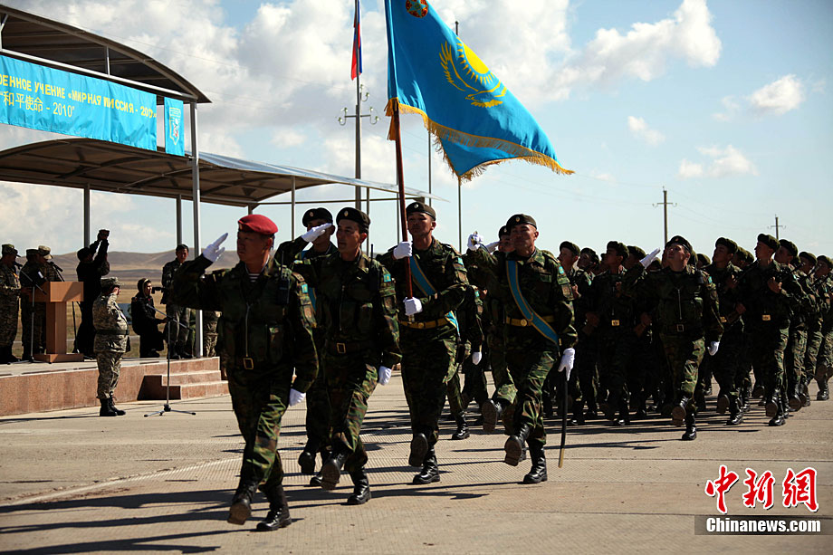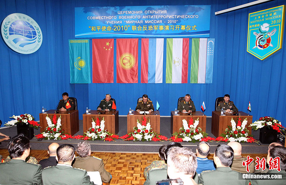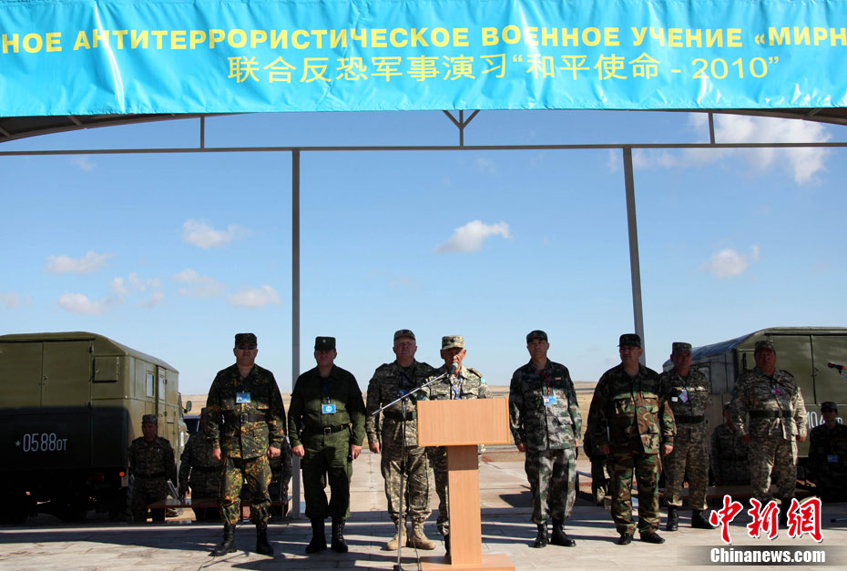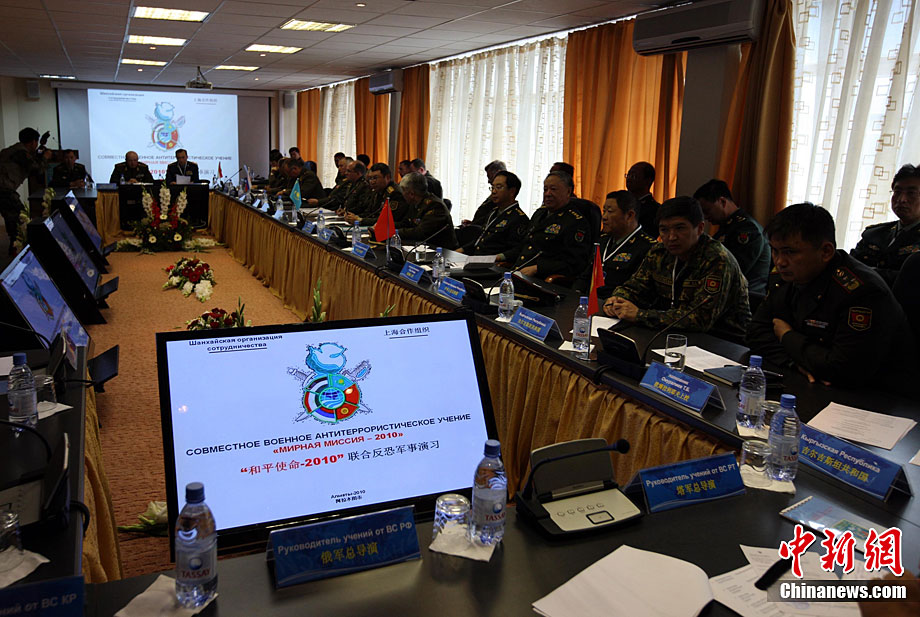 9月10日,參演“和平使命-2010”上合組織成員國武裝力量總參謀長(zhǎng)(參謀長(zhǎng)委員會(huì)主席)在哈薩克斯坦阿拉木圖舉行戰(zhàn)略磋商。戰(zhàn)略磋商結(jié)束后,參演五國總長(zhǎng)簽署并向聯(lián)合反恐軍事演習(xí)各方總導(dǎo)演頒發(fā)戰(zhàn)役訓(xùn)令,“和平使命-2010”聯(lián)合反恐軍事演習(xí)正式開始。中新社發(fā) 朱民 攝