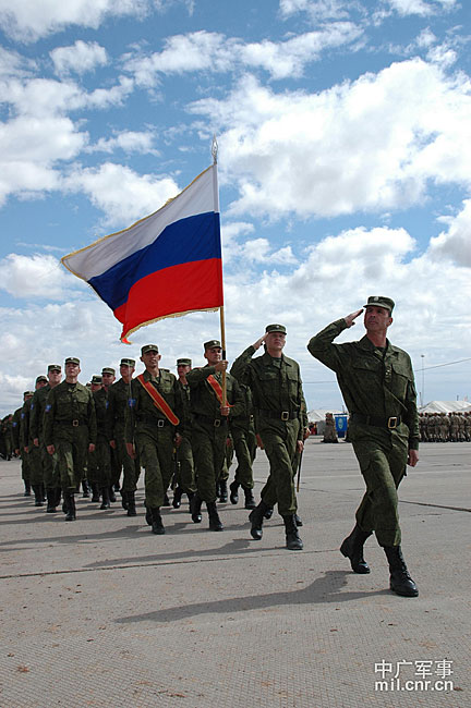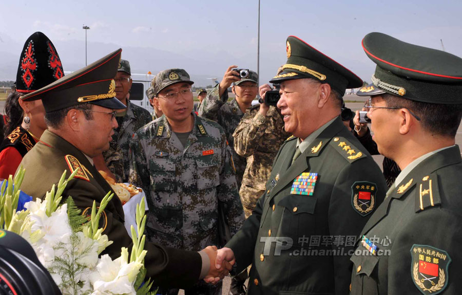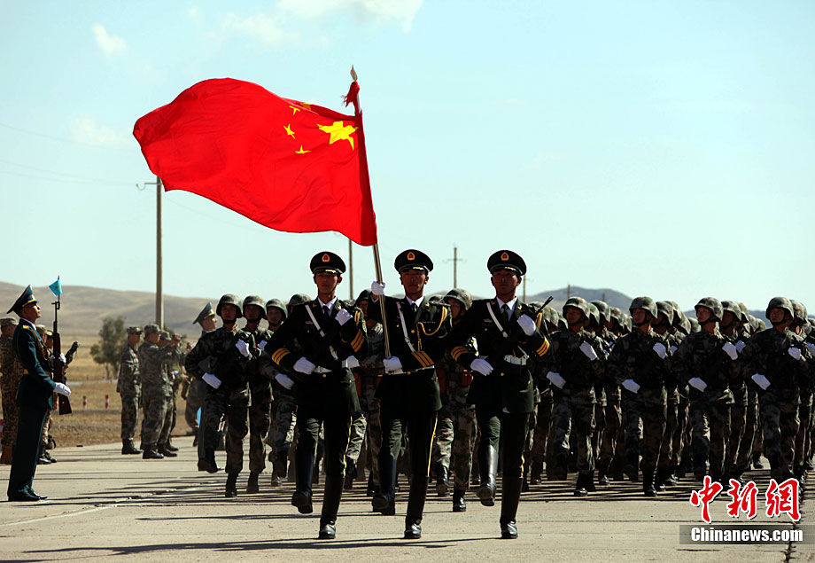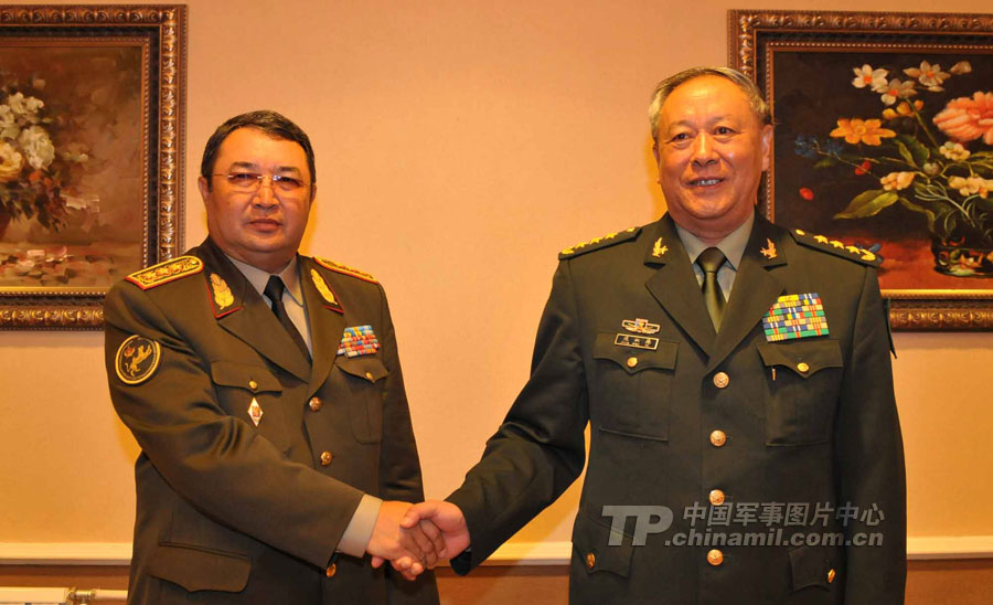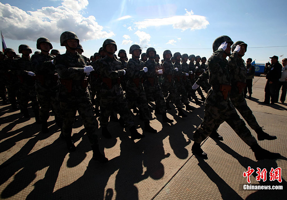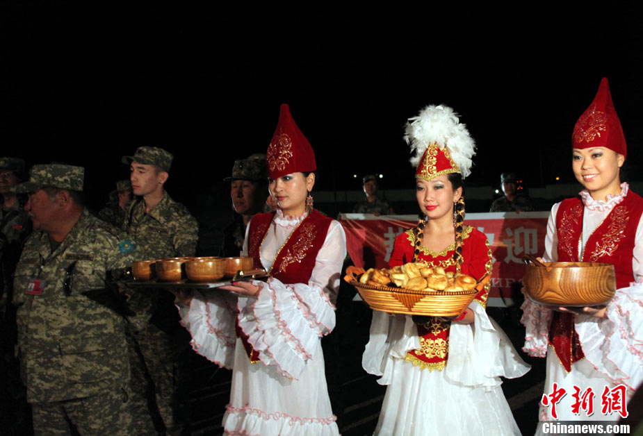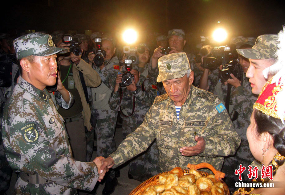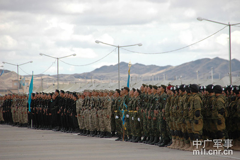 9月10日,參演“和平使命-2010”上合組織成員國武裝力量總參謀長(zhǎng)(參謀長(zhǎng)委員會(huì)主席)在哈薩克斯坦阿拉木圖舉行戰(zhàn)略磋商。戰(zhàn)略磋商結(jié)束后,參演五國總長(zhǎng)簽署并向聯(lián)合反恐軍事演習(xí)各方總導(dǎo)演頒發(fā)戰(zhàn)役訓(xùn)令,“和平使命-2010”聯(lián)合反恐軍事演習(xí)正式開始。中新社發(fā) 朱民 攝