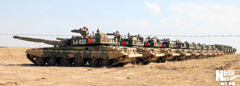 參加“和平使命-2010”上合組織聯(lián)合反恐軍事演習(xí)的中方參演裝備停放在哈薩克斯坦馬特布拉克訓(xùn)練場(chǎng)野戰(zhàn)兵營(yíng)。圖為99式坦克。孫彥新 攝 圖片來(lái)源:新華網(wǎng)