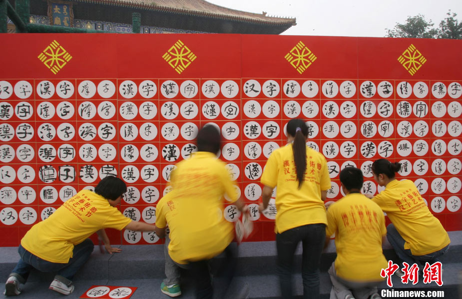 9月16日,北京兩百名書法愛好者在太廟前書寫各種字體的漢字,并共同完成“提筆、蘸墨、落筆、展卷”傳統(tǒng)程序。當(dāng)日,首屆“兩岸漢字藝術(shù)節(jié)”在北京太廟開幕。本次藝術(shù)節(jié)由中國藝術(shù)研究院、中華文化聯(lián)誼會、臺灣文化總會、河南省安陽市政府聯(lián)合主辦,中國藝術(shù)研究推廣中心、臺灣中華新文化發(fā)展協(xié)會共同承辦。中新社發(fā) 蘇丹 攝