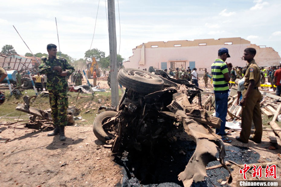 9月17日,斯里蘭卡東部拜蒂克洛鎮(zhèn)一個警察局當(dāng)天發(fā)生爆炸,造成包括兩名中國工人在內(nèi)的數(shù)十人死亡。圖為斯里蘭卡警方調(diào)查爆炸現(xiàn)場。